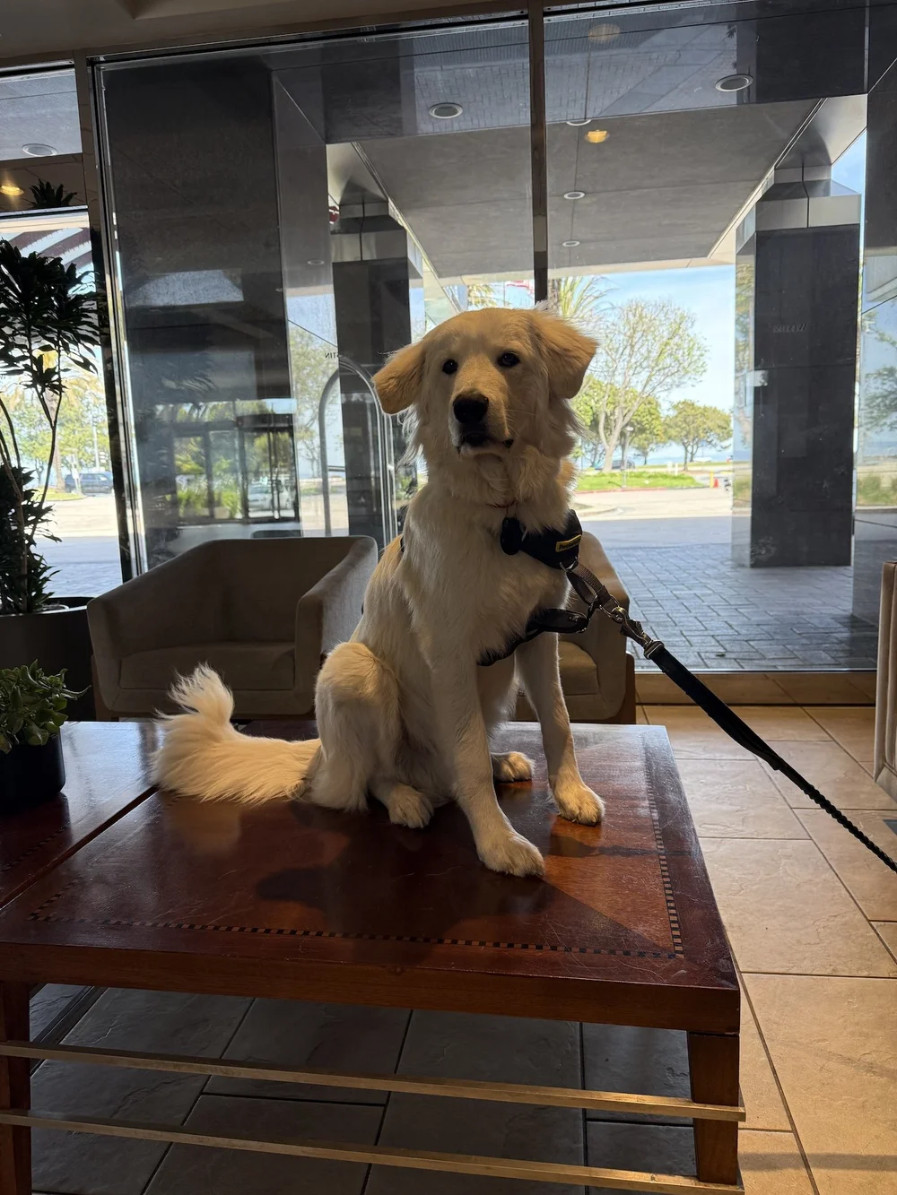 Ace, one of the SFSF mascots, was totally listening to his owner, Todd (one of the SFSF owners/organizers), who was telling him not to get on the table, lol.
