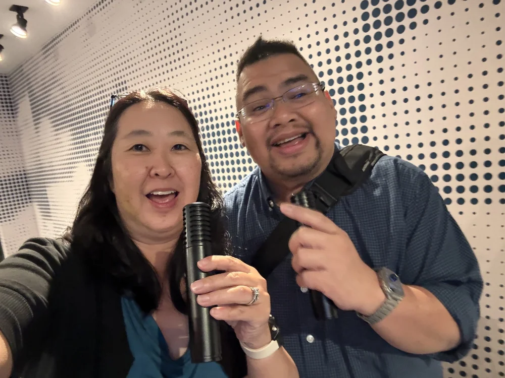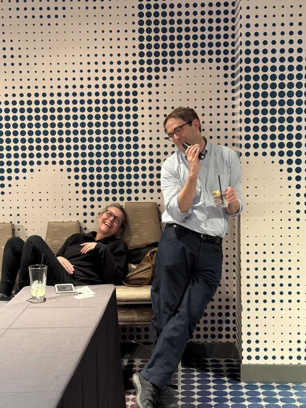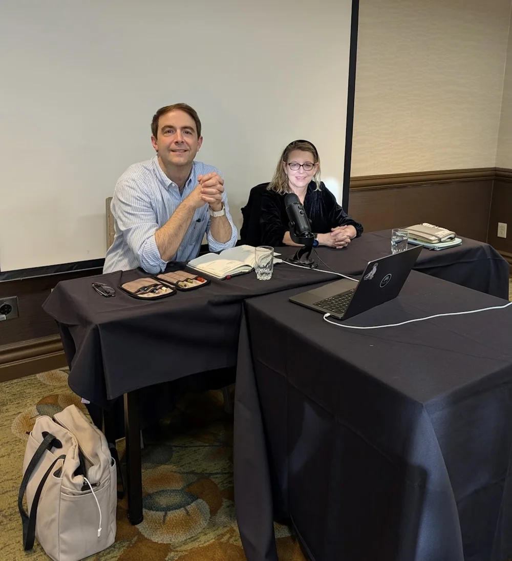 Joe Crace and Lisa Vanness before the start of the live On the Paper Trail podcast recording. (PC: Yuan)