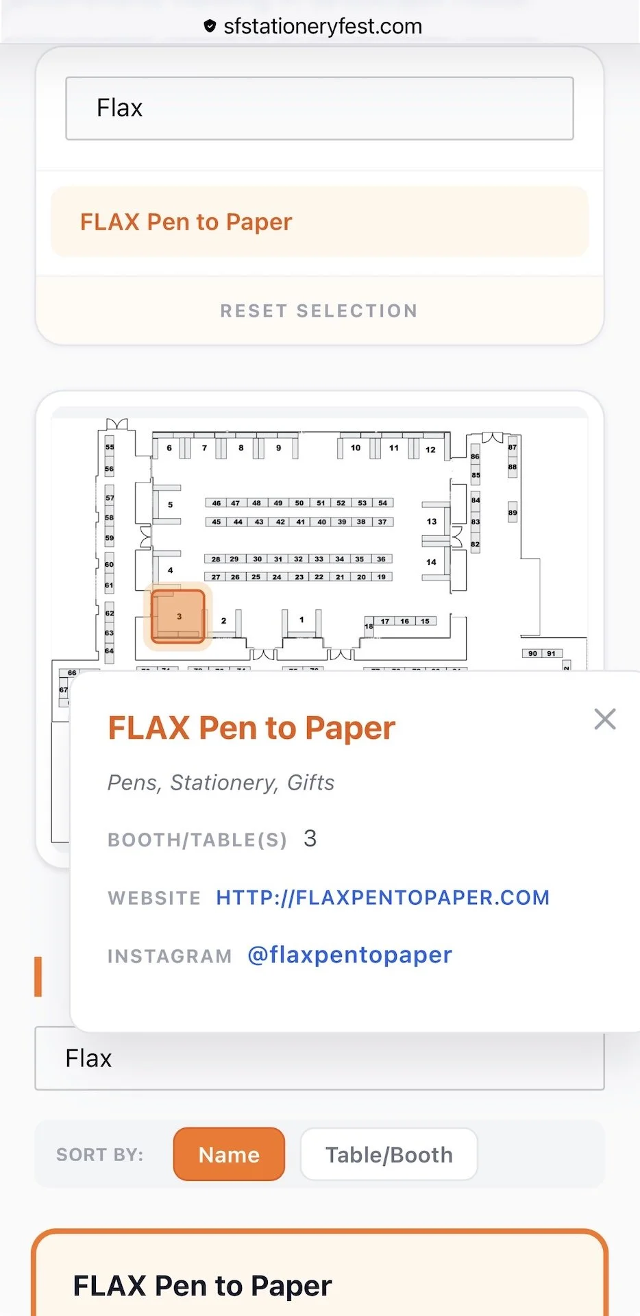 You can click on a table, or search by name or keyword (like washi) to find out where a vendor is located. This is a screenshot from my iPhone.