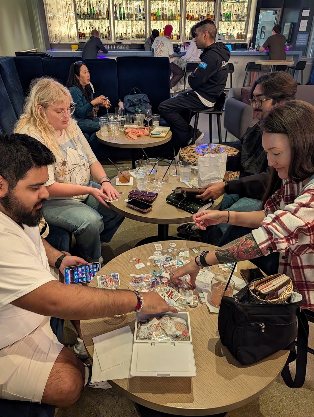 Some after hours sticker swapping, journaling, and socializing at the Aloft bar. (PC: Yuan)