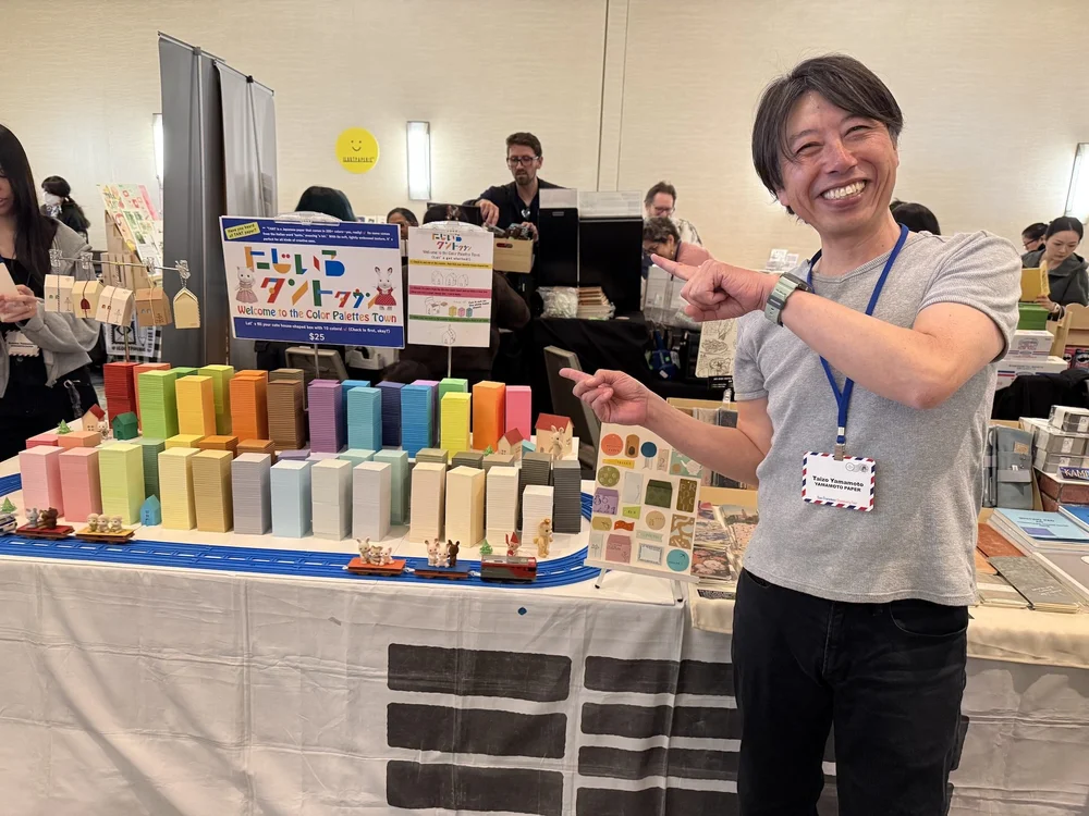 PLOTTER also held a pop-up shop during their event - in the foreground, folks can assemble a paper pack to use page separators or as decorations.