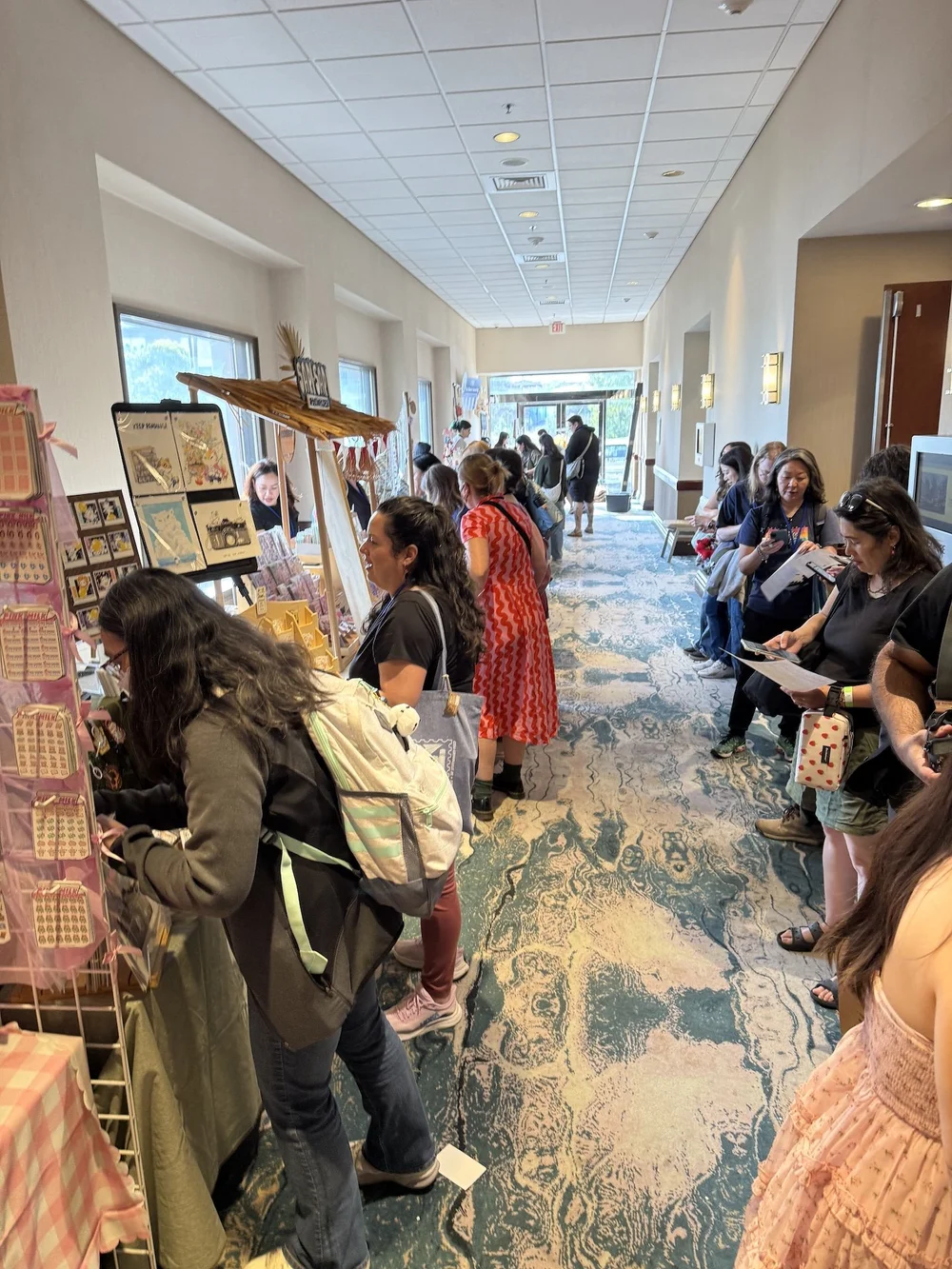 Stampers are bit too eager - I’ve seen this on both sides of the table at pen shows and also at SFSF, people taking up a lot of space and time to stamp their journals/sticker paper, while disregarding nearby shoppers who are trying to look at/buy products or ask questions, but they can’t because “stampers” (who often aren’t buying) are in the way. Vendors don’t mind folks using their stamps, that’s why they bring them, but they do mind if you’re getting in the way of other people trying to shop. They also mind when you (or your kids) are pushing too hard on their stamps (I’ve seen people use their entire upper body weight to press down on stamps). Some vendors have started bringing fewer stamps to their tables for these reasons. I would like to suggest that the show have a dedicated stamping room and/or event (during pre-show or after-hours), which would be monitored for proper usage and prevent thefts (so sad that this happens). This would allow folks to stamp to their hearts content, while also ensuring that customers have an easier shopping experience.