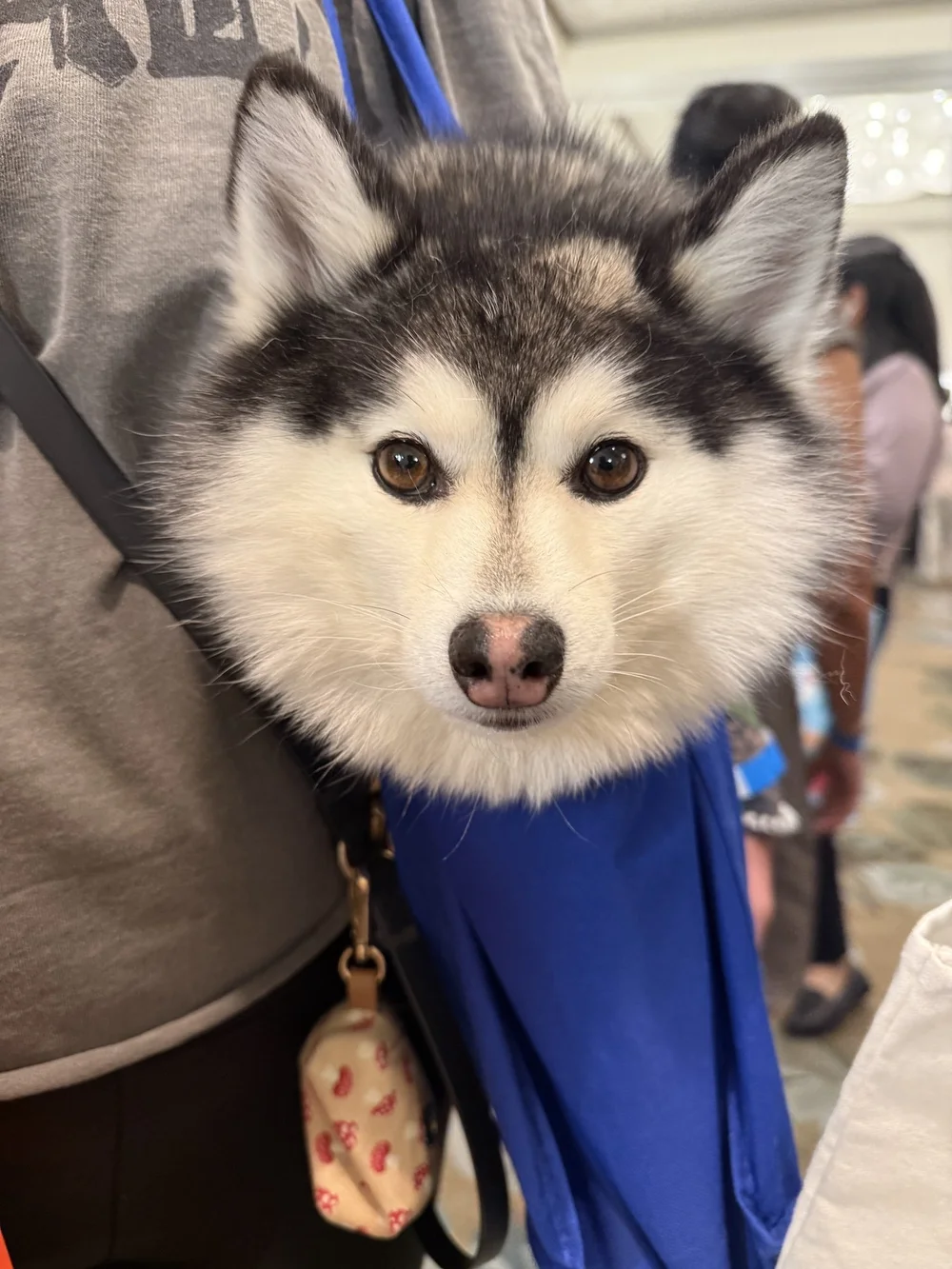 One of the absolute cutest (and softest) dogs at the show, and was extra cute in a tote bag! So well-behaved too!