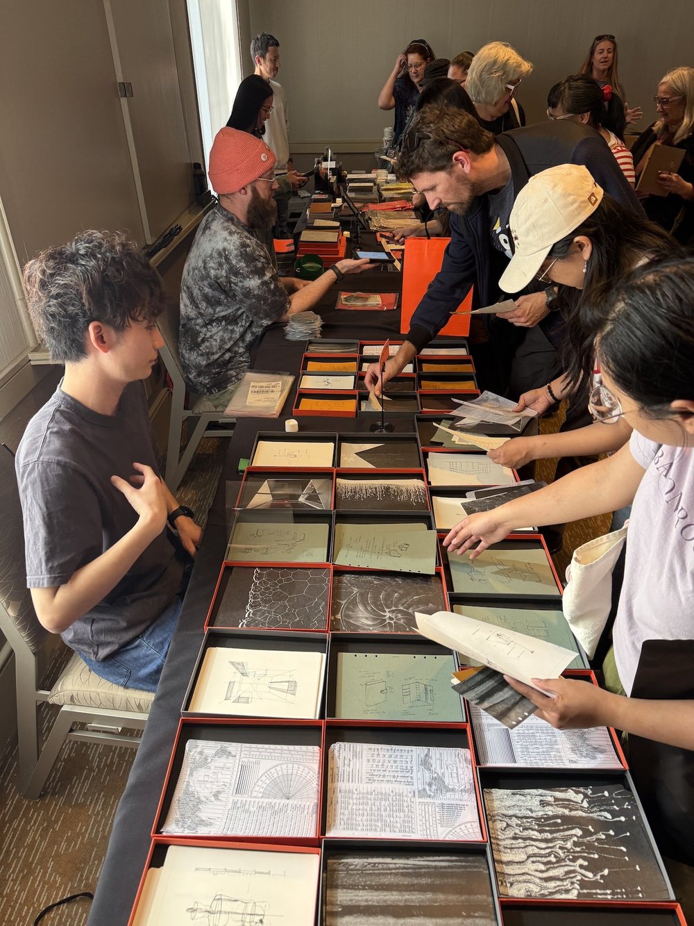 The room wasn’t too crowded for the PLOTTER event but it ebbed and flowed as some folks came for the shopping, while others stayed for the journaling and meetup.