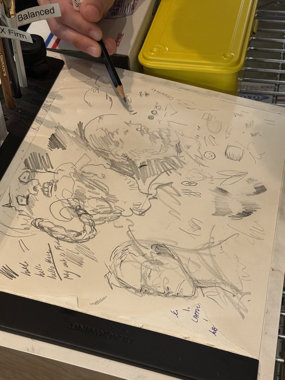 I couldn’t bear to tear off this page from Flax’s Blackwing tester display. People are so artistic and talented!